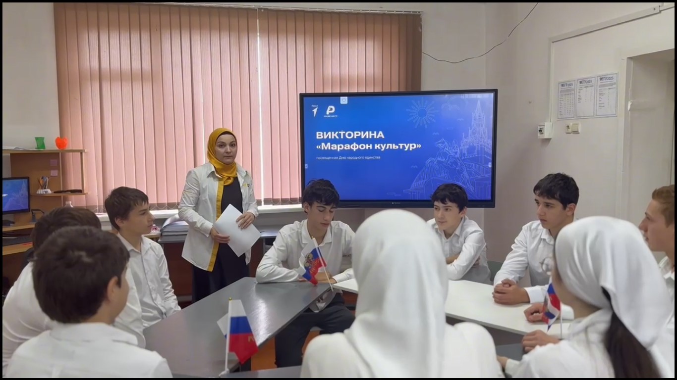 31.10.202531 октября 2025 года в рамках празднования Дня народного единства в нашей школе состоялась увлекательная викторина по теме «Марафон культур». В ходе мероприятия дети познакомились с историей возникновения праздника, подвигами предков во имя независимости Родины. Ребята вспомнили о том, как велика и красива наша Родина, как богата событиями её история, закрепили свои знания о государственных символах. #Росдетцентр #НавигаторыДетства #РоссияСемьяСемей, #МарафонКультур, #ДвижениеПервых, #РодныеЛюбимые