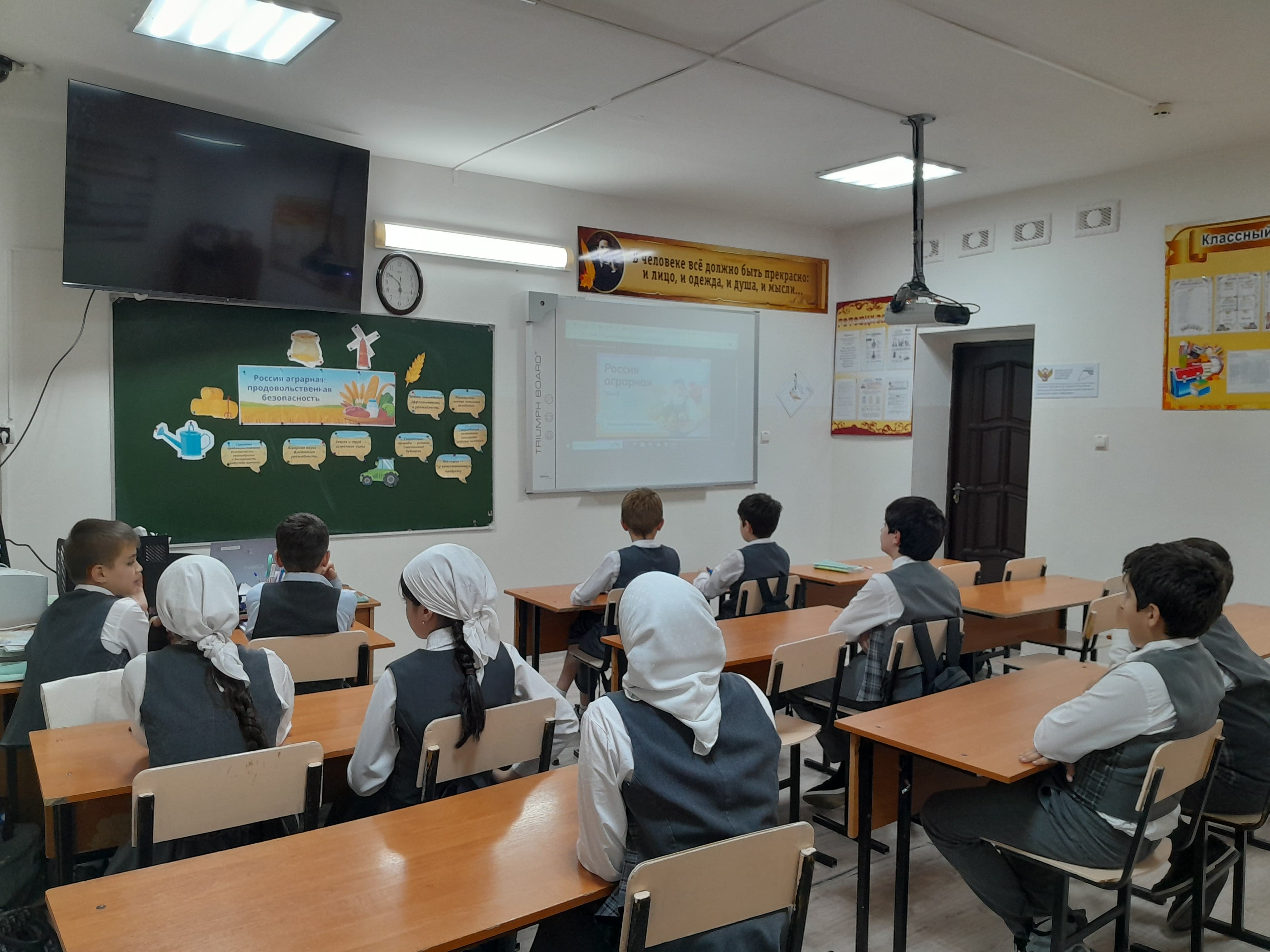30 октября в МБОУ СОШ №4 села Серноводское в 6-11 классах прошло профориентационное занятие по проекту «Россия — мои горизонты» на тему «Россия аграрная: продовольственная безопасность». В ходе занятия, учащиеся познакомились с ключевыми аспектами аграрного сектора России, обсудили вопросы продовольственной безопасности и её значение для устойчивого развития страны. Были рассмотрены современные вызовы в сельском хозяйстве, а также роль инноваций и молодежи в обеспечении продовольственной независимости. Занятие способствовало расширению кругозора и формированию патриотического отношения к родной стране.