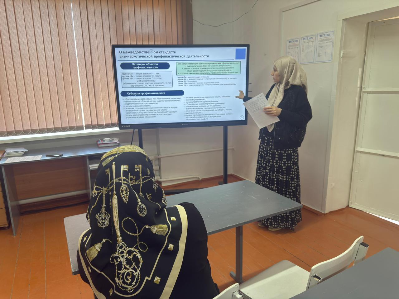 18.11.2025В МБОУ"COШ №3 ст.Ассиновская»состоялся методический семинар для педагогического коллектива, посвященный реализацииМежведомственного стандарта антинаркотической профилактической деятельности.Мероприятие провели педагог-психолог Тахингова М.С. и заместитель директора по воспитательной работеМочаева М.Я. В ходе семинара специалисты осветили ключевые аспекты стандарта, уделив особое внимание возрастным особенностям профилактической работы.Были подробно разобраны методические рекомендации и практические инструменты для двух целевых групп: детей младшего школьного возраста (7-11 лет) и подростков (12-16 лет). Участники семинара получили чёткое представление о том, как эффективно выстраивать профилактическую работу в каждой из возрастных категорий.