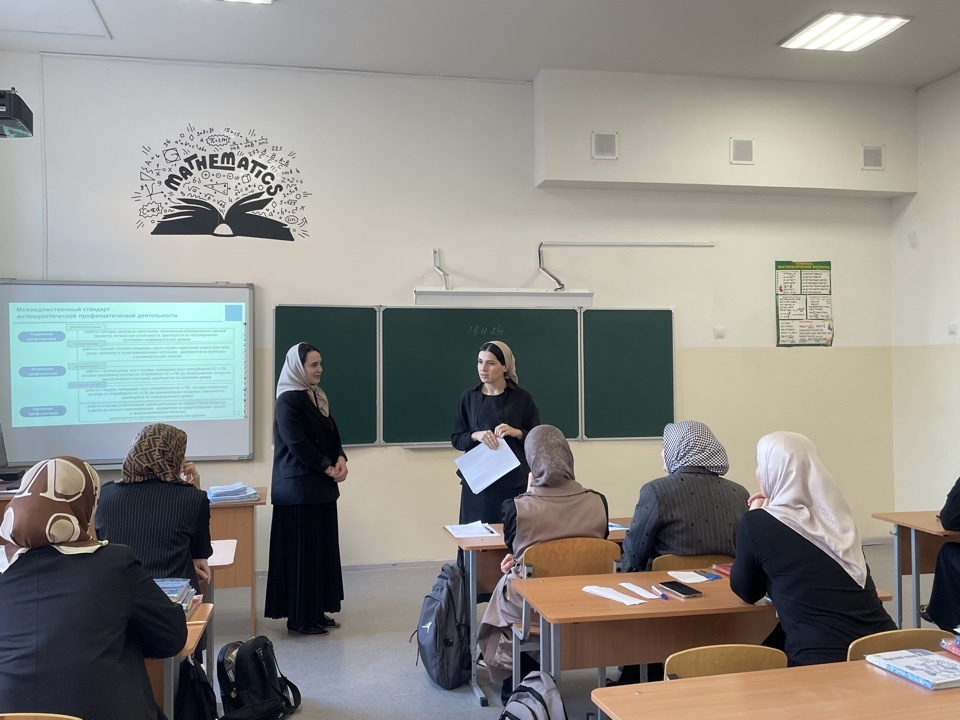 19.11.202519 ноября с педагогами МБОУ "СОШ Nº2 ст. Ассиновская им. Муташева Х.Р».Совместно заместителем директора по воспитательной работе Махамаевой А.С и социальным педагогом Дешнеевой М.Ш.был проведен семинар. На котором подробно рассмотрели «Межведомственный стандарт антинаркотической профилактической деятельности»