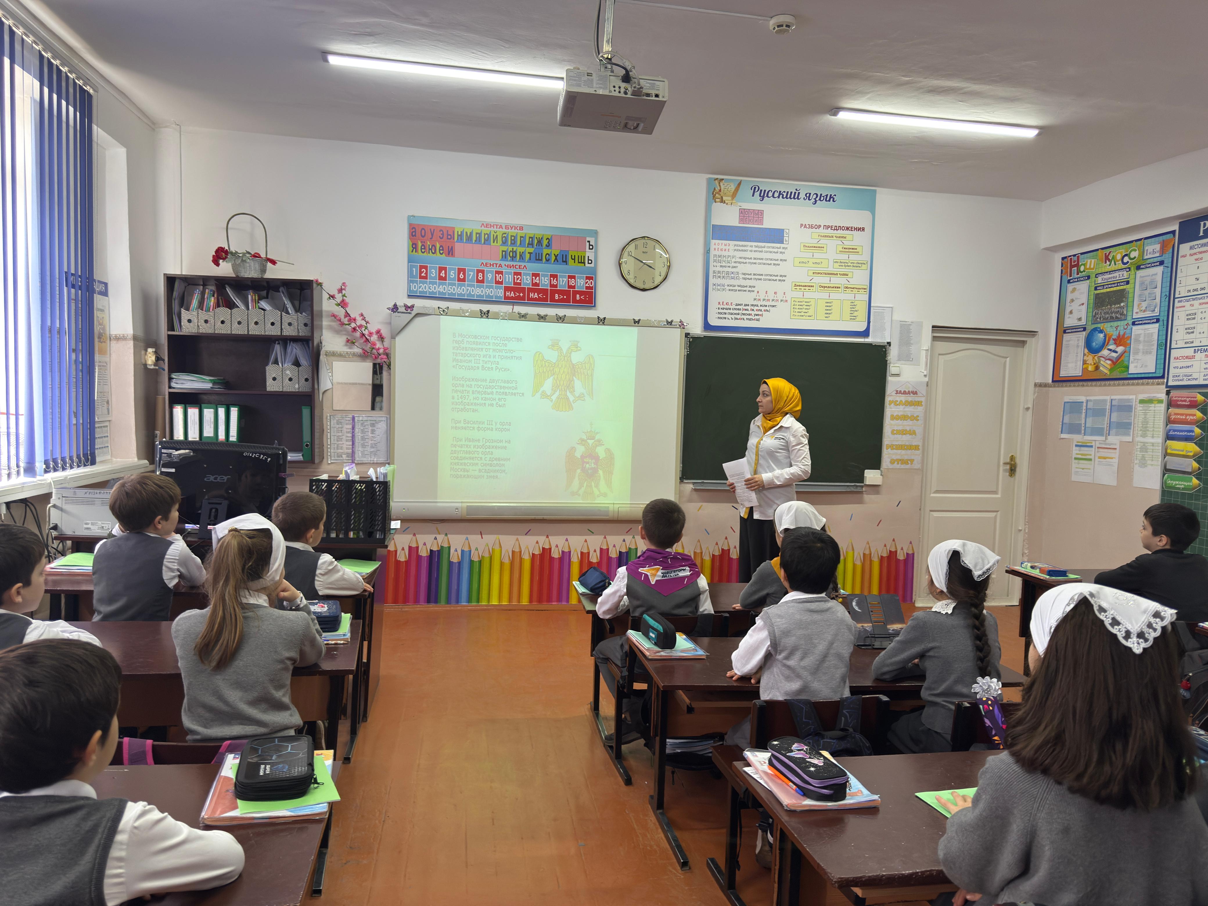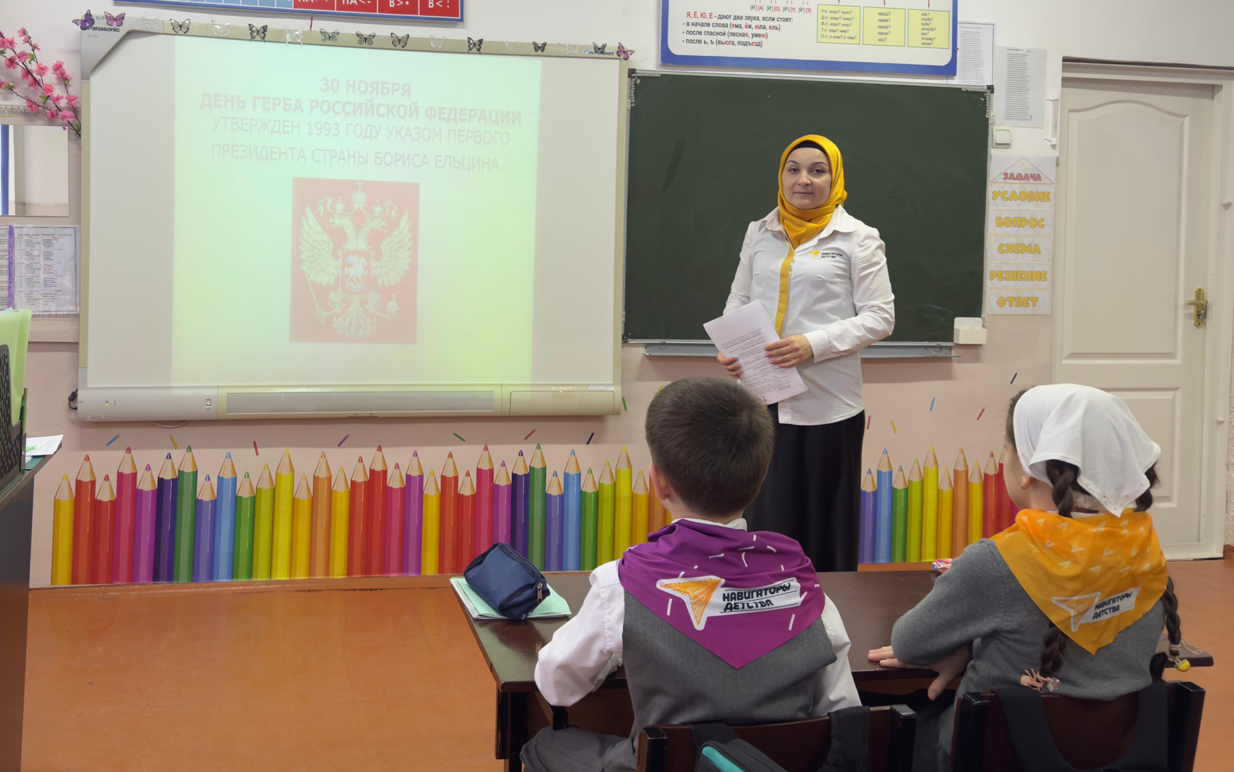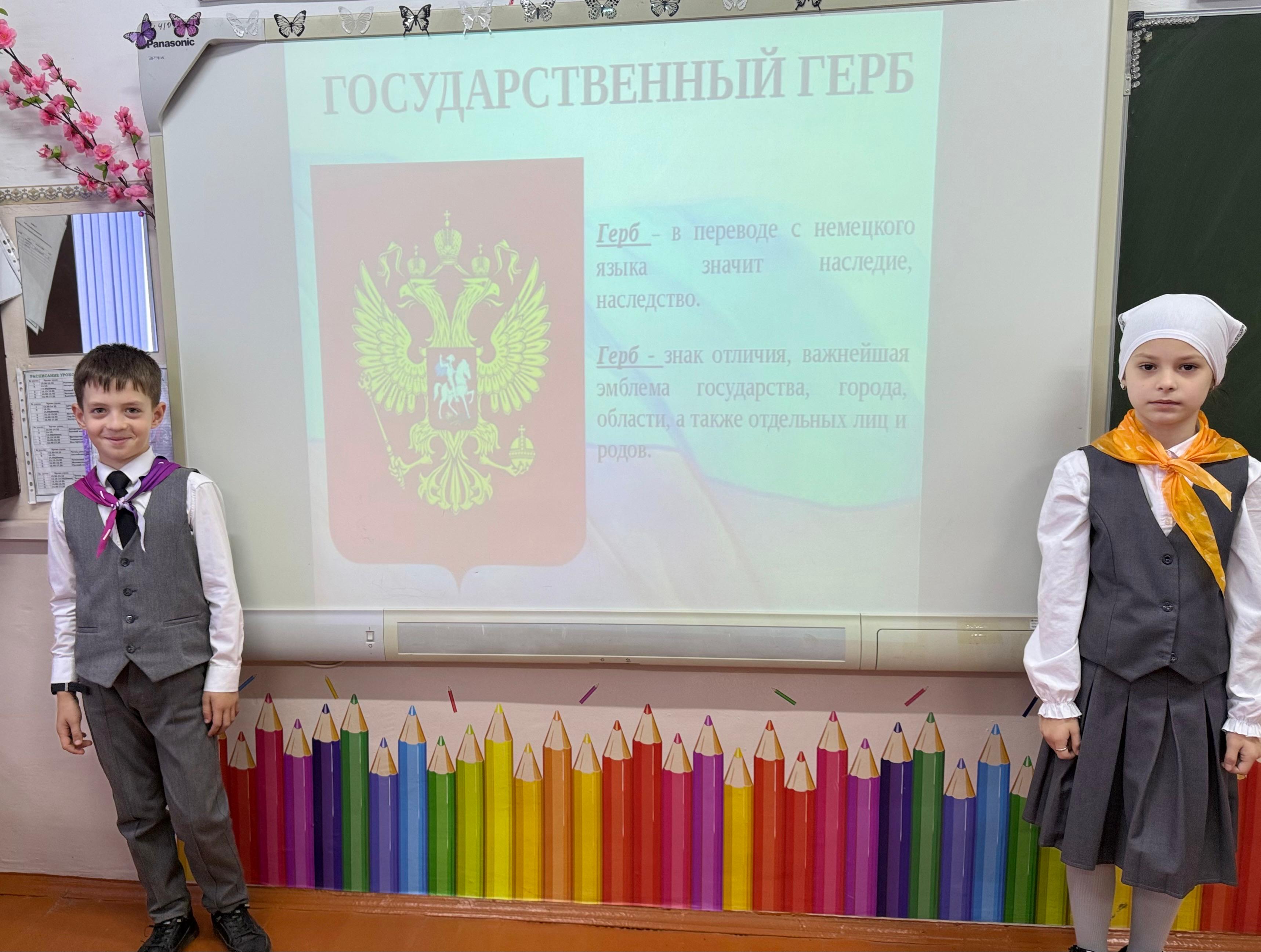 01.12.2025Советник директора по воспитанию и взаимодействию с детскими общественными объединениями Куркаева Ж.С. провела для Орлят России беседу ко Дню государственного герба Российской Федерации. Цель мероприятия— познакомить ребят с государственной символикой России, раскрыть значение элементов герба и воспитать уважительное отношение к национальным символам. В ходе занятия школьники: -изучали символику герба: разбирали значение двуглавого орла, трёх корон, скипетра, державы и изображения Святого Георгия Победоносца на груди орла; -узнавали интересные факты об истории главного символа нашей страны; -обсуждали, почему важно знать и уважать государственную символику. #НавигаторыДетства #Росдетцентр #оГербеРФсНД