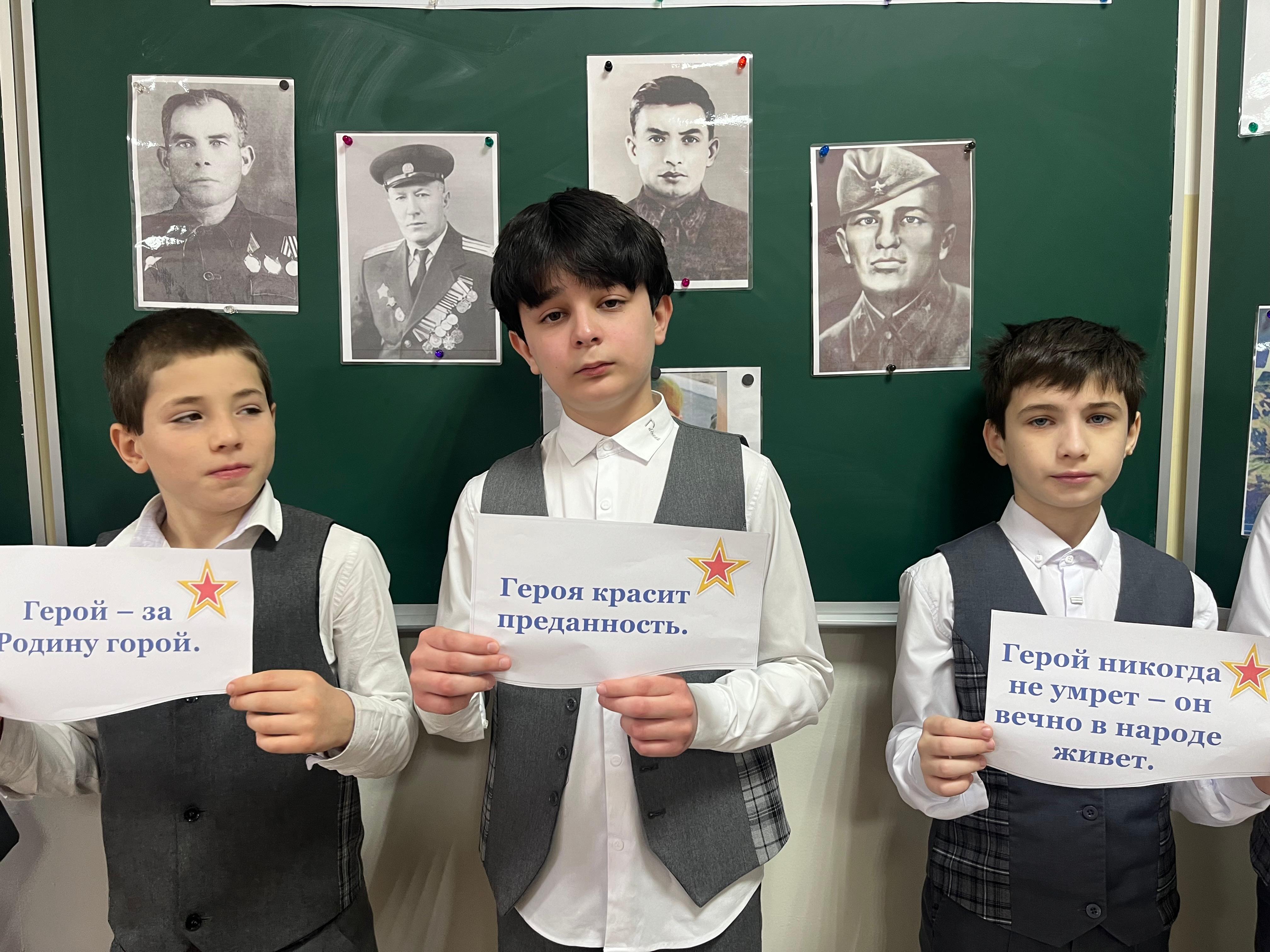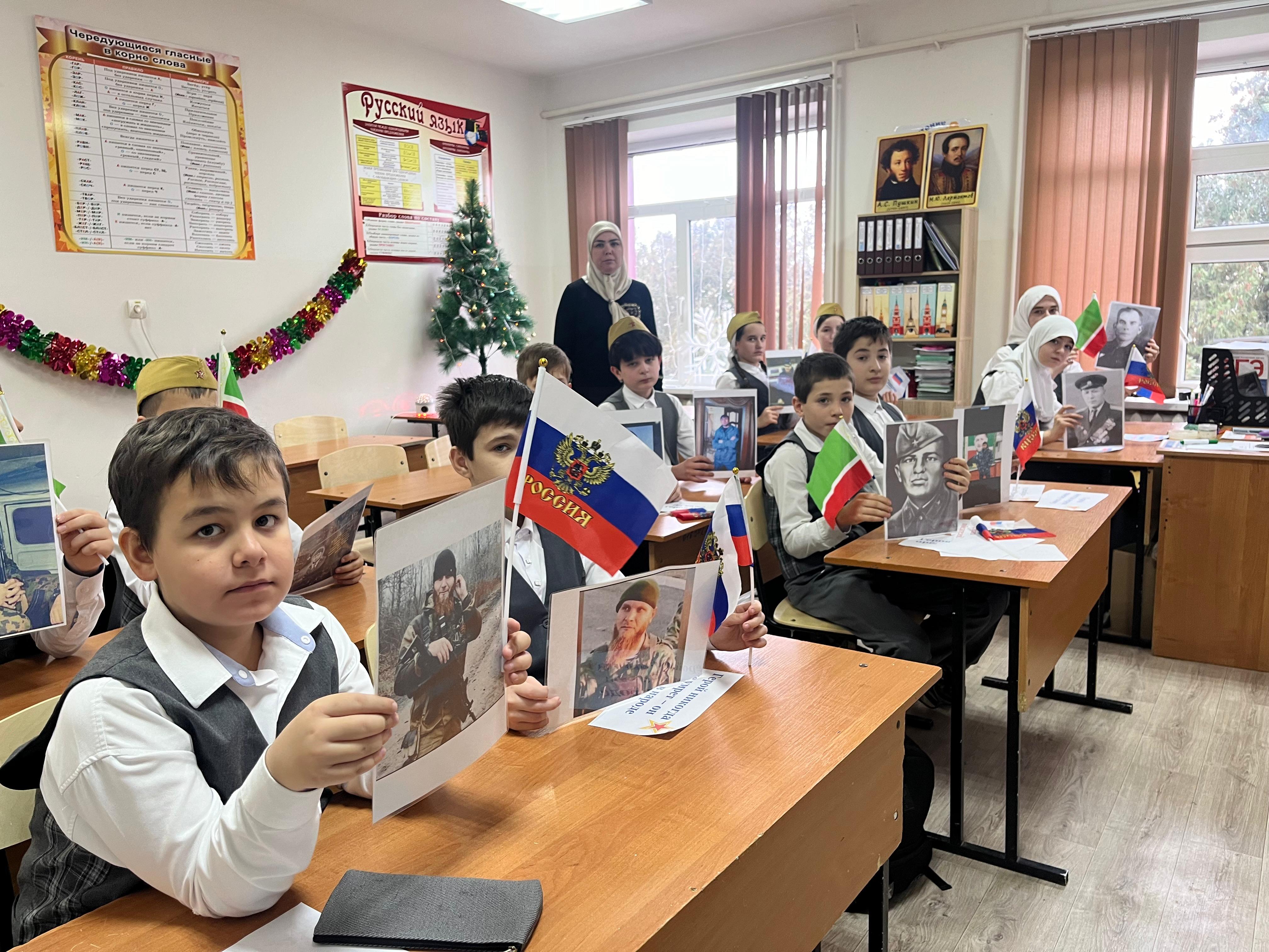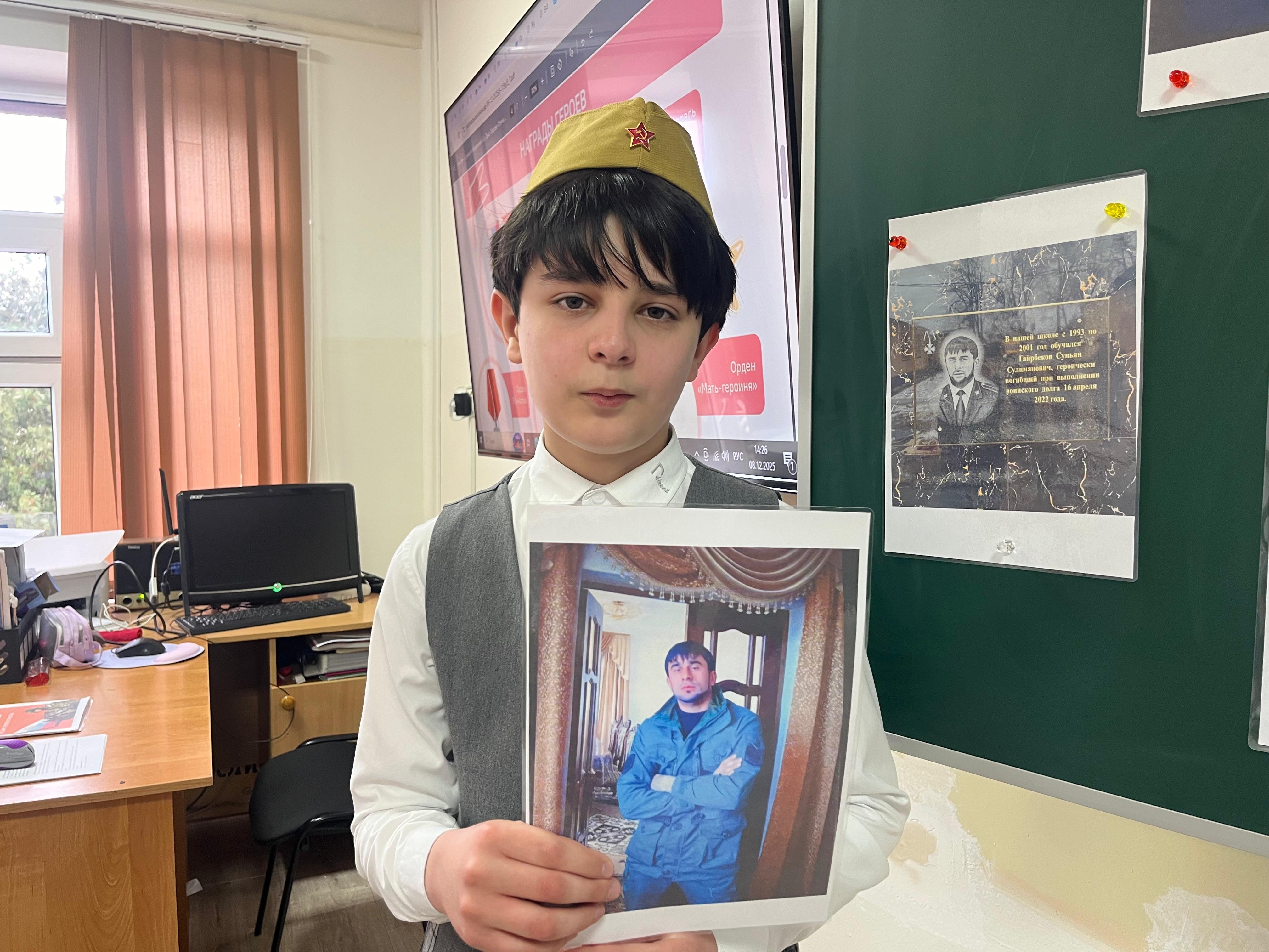 В преддверии праздника Дня Героев Отечества в МБОУ «СОШ№4 с.Серноводское» прошло внеклассное мероприятие, посвященное герою специальной военной операции Гайрбекову Супьяну Сулимановичу. Его сын, Гайрбеков Сайфула, ученик 6А класса, был глубоко тронут, когда держал в руках фотографию своего отца, погибшего в 2022 году на Украине. Этот день стал особенным для него и для всех нас, потому что мы смогли вспомнить героизм и мужество не только его отца, но и всех тех, кто отдал свою жизнь за Родину, мы смогли почтить память настоящего героя, который проявил мужество и самоотверженность, защищая свою Родину. Сайфула с гордостью рассказывал о своем отце, о его доблести и любви к семье. Говоря о нем, он выражал гордость и печаль, и в глазах сверкали слезы — это был трогательный момент, который заставил всех присутствующих задуматься о ценности жизни и жертвах, которые приносят наши герои.