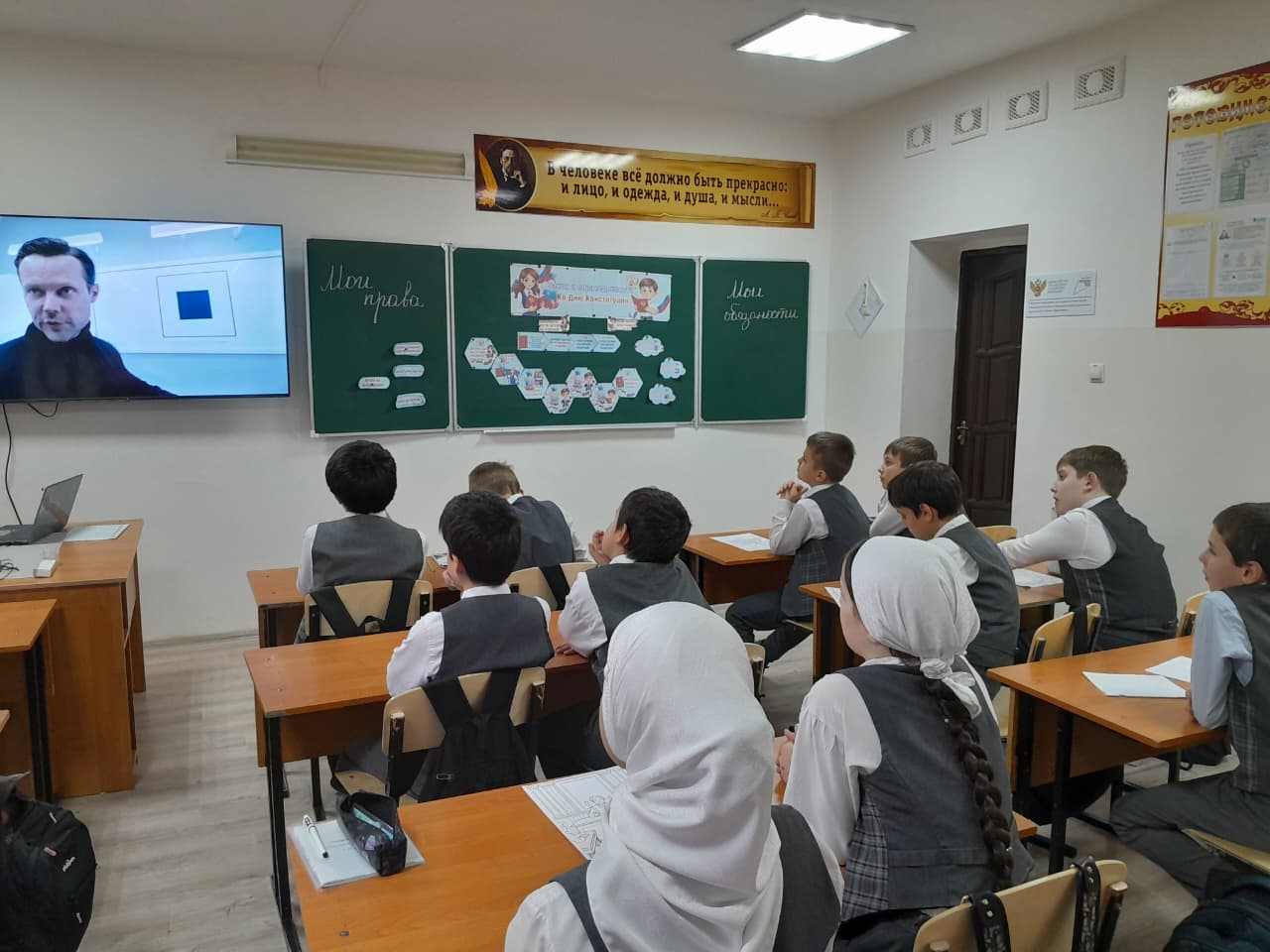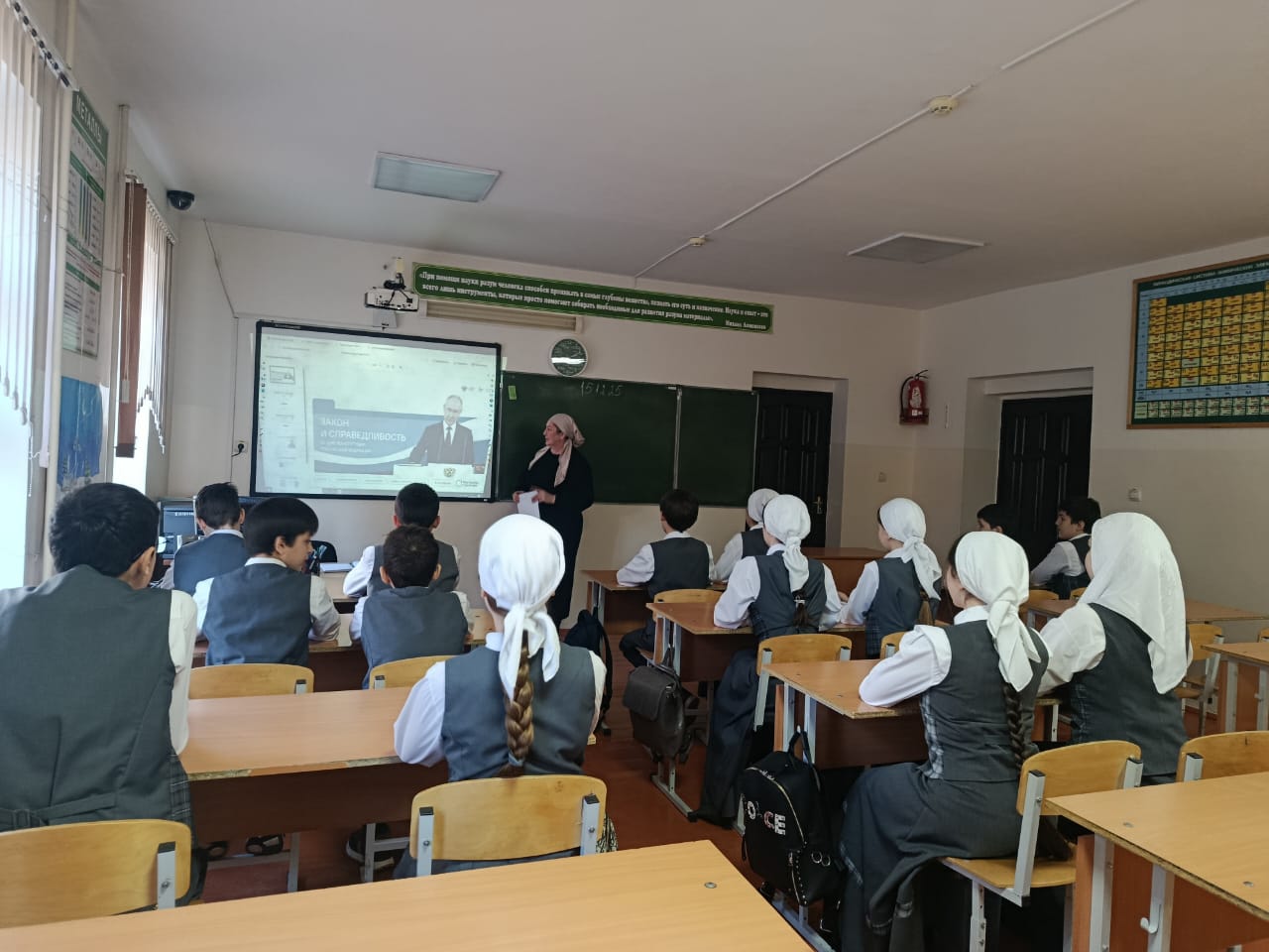 15 декабря в МБОУ “СОШ №4 с. Серноводское” прошло внеурочное занятие на тему “Закон и справедливость” для учащихся 1-11 классов, приуроченное к Дню Конституции Российской Федерации. В ходе мероприятия ребята познакомились с основными положениями Конституции, обсудили важность соблюдения законов и ценностей справедливости в обществе. Классные руководители организовали интерактивные викторины, групповые обсуждения и просмотр видеоматериалов, чтобы сделать занятие более интересным и познавательным. Такое мероприятие помогло сформировать у школьников понимание своих прав и обязанностей, а также важности законности в нашей жизни.
