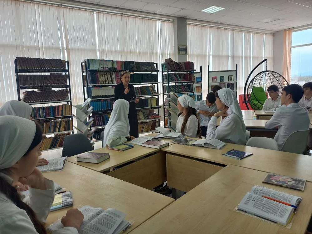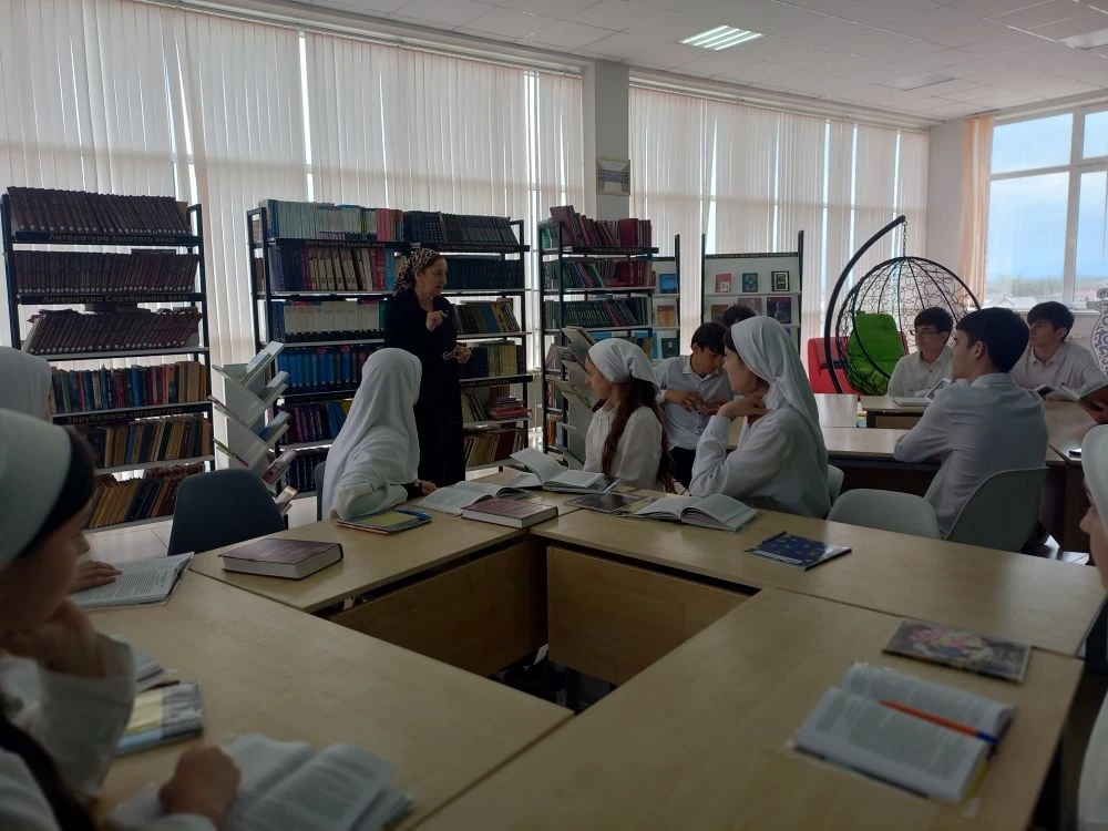 22.04.2026Сегодня в 9 классе вместе с учителем чеченского языка Абубакировой Мадаш Хизировной прошёл библиотечный урок, посвящённый чеченской литературе. Данный урок был посвящен жизни и творчеству Саьйида Гацаева, а особое внимание было уделено его стихотворению «Буьйса хаза, буьйса тийна».